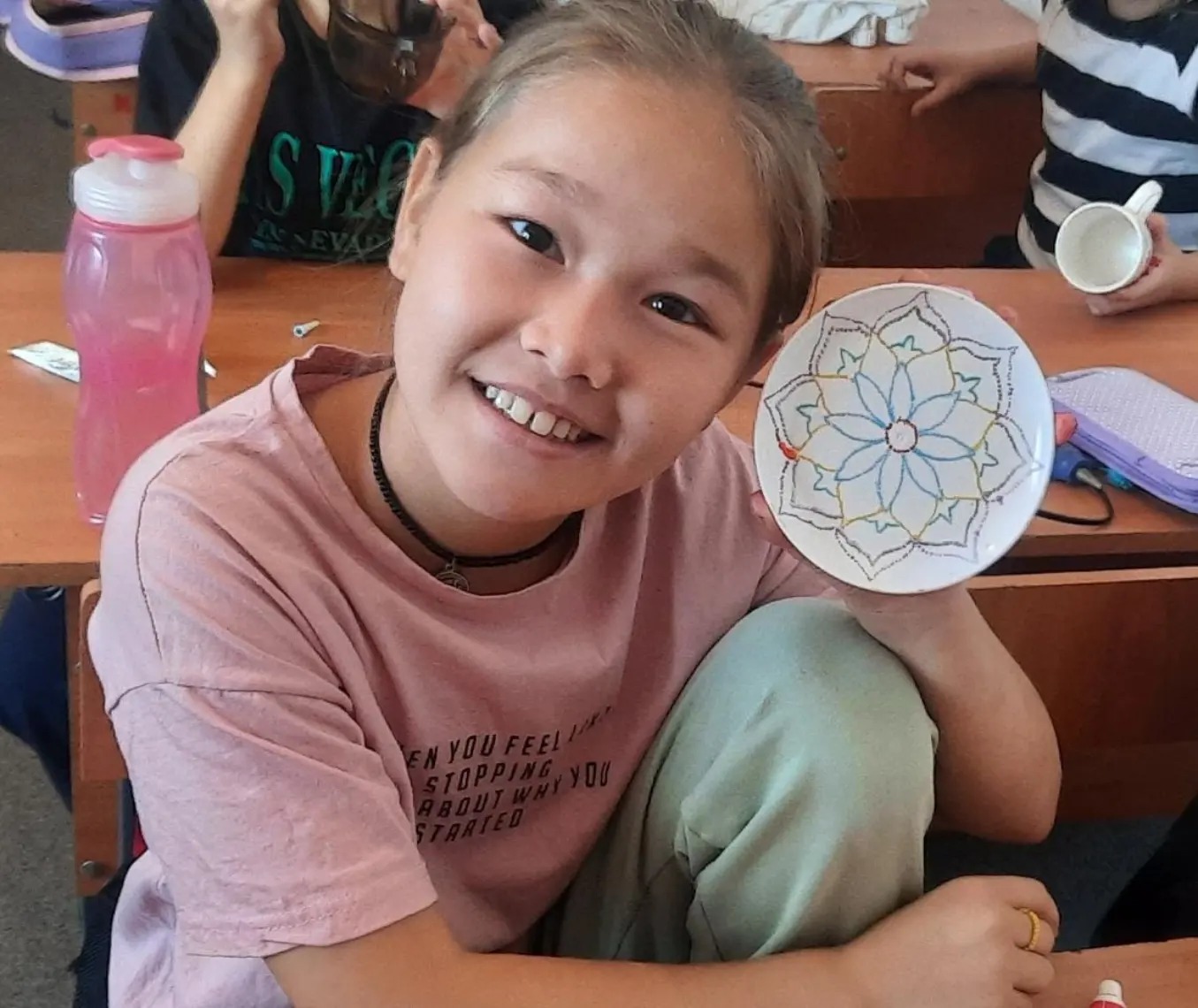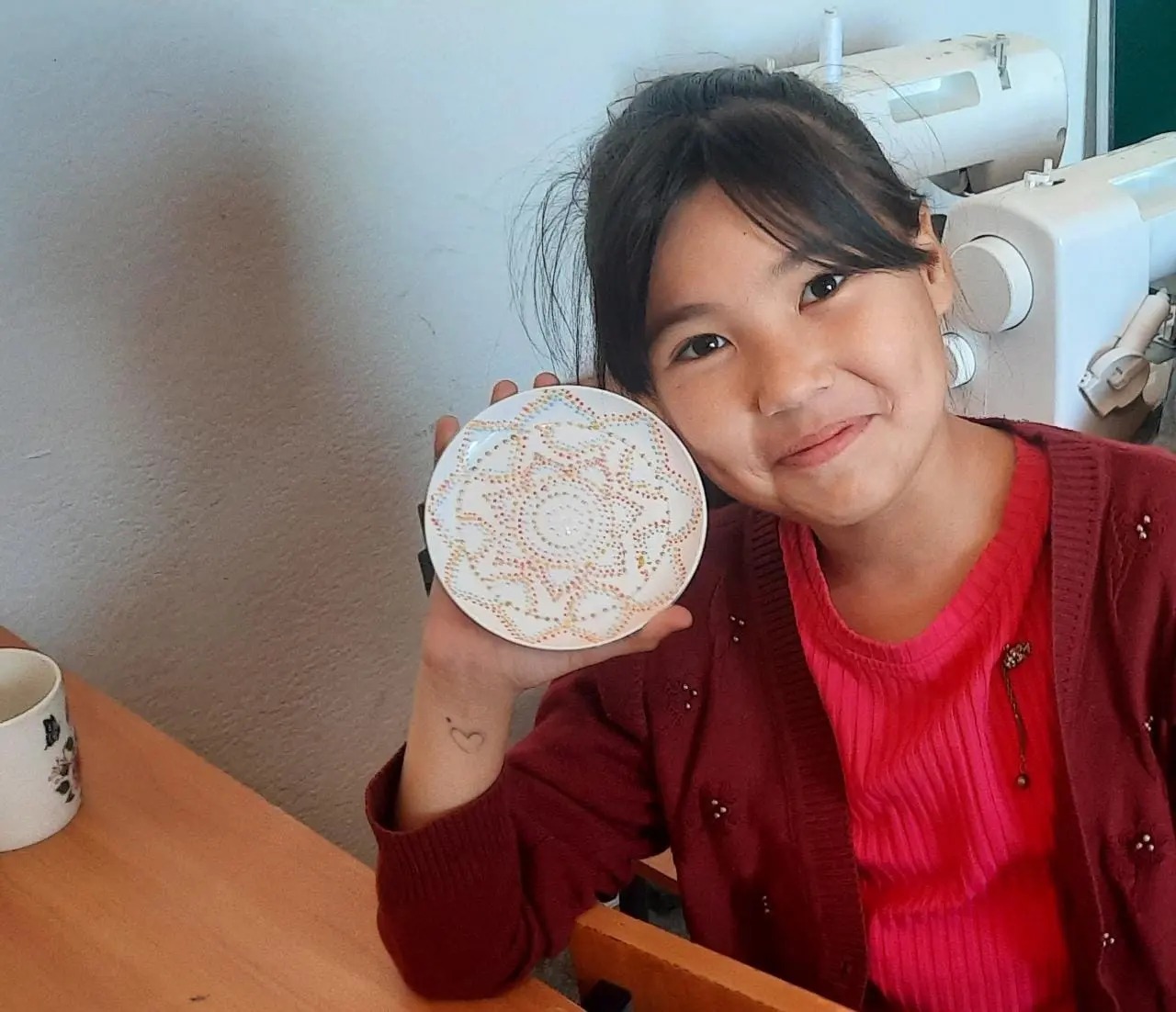 "Шұғыла" балалар мен жасөспірімдер шығармашылық орталығының "Сиқырлы қалам "Сурет үйірмесінің оқушыларының жасаған жұмыстары. Ыдыс-аяқ бетіне нүктелеп сурет салу