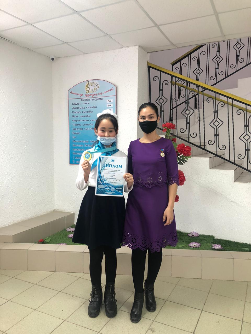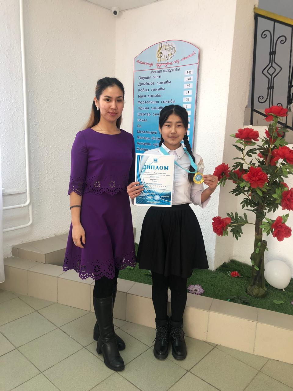 Каримова Аружан – 1-орын, жетекшісі Құлташева Ақтоты
