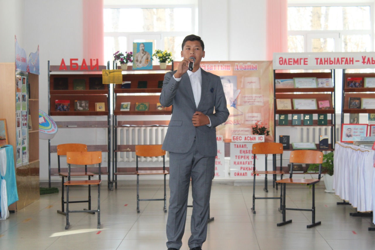 Алғашқы құттықтау сөз кезегі аудандық білім беру бөлімінің басшысы Дихамбаев Мұрат Сембайұлына берілді. Абай мұраларының нәрін өскелең ұрпақтың санасына сіңіру, өмірлік азығына айналдыру маңызды міндеттердің бірі екендігіне тоқталды.